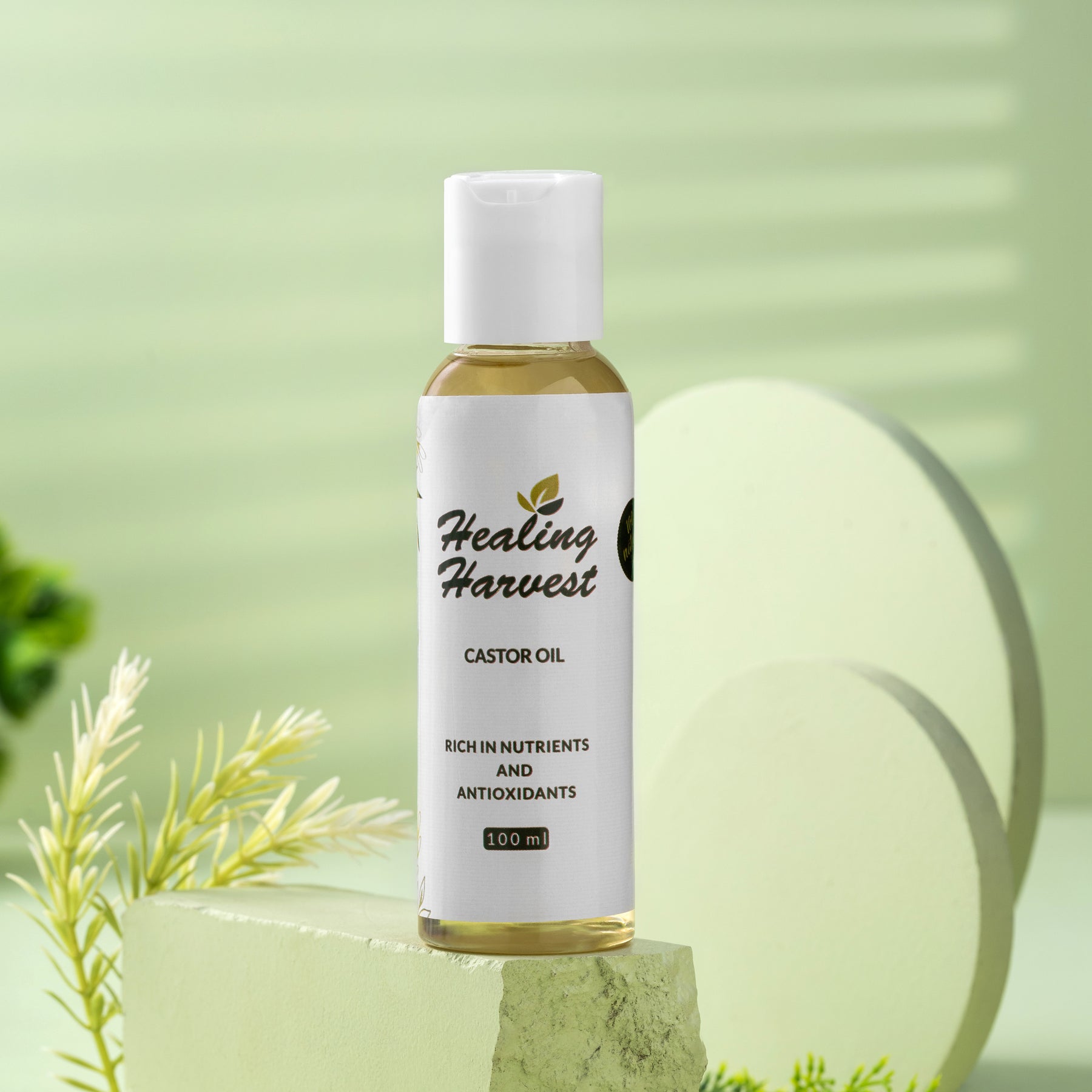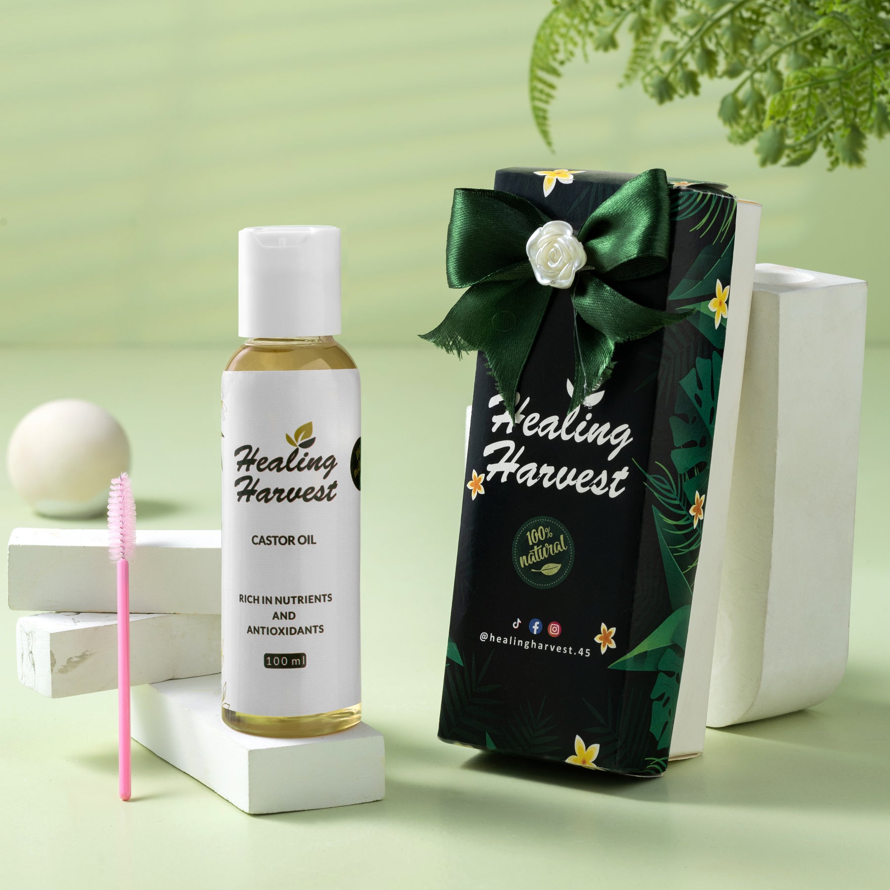 Experience the natural power of Healing Harvest Castor Oil, a 100% pure and cold-pressed oil extracted from premium castor seeds. Rich in vitamins and fatty acids, it deeply nourishes hair, skin, and eyelashes — promoting growth, hydration, and natural shine.